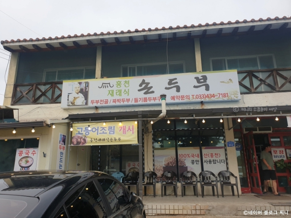 홍천재래식손두부는 100% 홍천 콩을 직접 갈아 만든 손두부 전문점이다. 주메뉴는 짜박두부로 두부찌개나 조림과는 달리 얼큰하고 고소한 맛이 일품이다. 짜박이는 돼지고기를 넣고 자박하게 끓여 먹는 음식으로 들기름 두부구이를 같이 먹어도 좋다. 그 밖에 두부전골이나 순두부도 맛볼 수 있는데 순두부는 매주 금요일에만 만든다고 한다.
