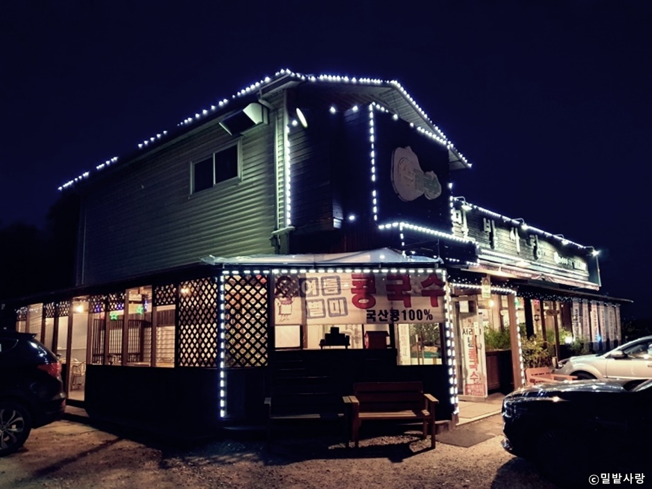 경기도 양주시 남방동에 위치한 밀요리 음식점이다. 2층 건물 앞에 주차장이 있다. 내부 매장 외에 테라스 자리가 있다. 메뉴는 밀로 만든 콩국수, 서리태국수, 바지락칼국수 외에도 낙지찜, 아귀찜 등이 있다. 여름에는 콩국수가 인기다. 콩국수 국물만 판매하기도 한다. 백김치는 원하는 사람에게만 제공한다. 콩은 인근지역에서 수확한 것을 사용하며, 서리태 콩국수는 주문하면 바로 콩을 맷돌로 갈아 만든다. 요리에 사용하는 콩나물은 건강에 좋은 황토지장수 콩나물을 사용한다. 양주역에서 차량으로 약 5분 거리에 있다. 가까이에 묵남저수지, 묵계저수지, 천보산이 있다.