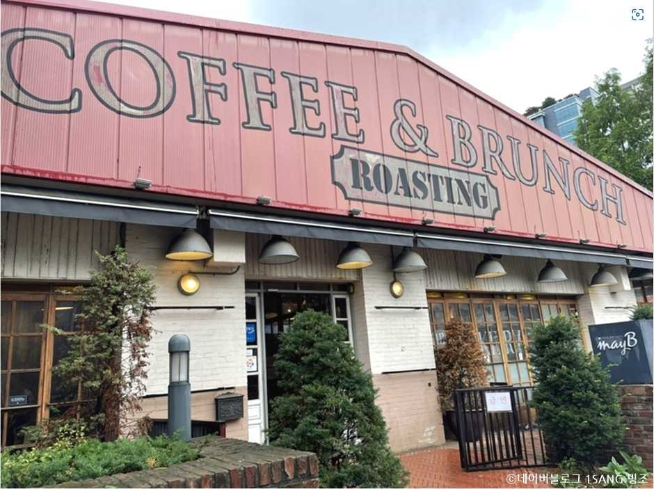 메이비카페는 2호선 구로디지털단지역 근처에 있는 브런치 카페이다. 빨간 지붕으로 된 단독건물이어서 찾기 쉽다. 입구에 들어서면 한쪽 벽면을 가득 채운 꽃무늬 벽화가 시선을 끈다. 가게 곳곳은 빈티지 스타일의 가구와 소품으로 채워져 있다. 다양한 브런치 메뉴와 파스타, 리소토, 스테이크 등 다양한 식사류가 준비되어 있으며 각종 커피 및 음료도 맛볼 수 있다.