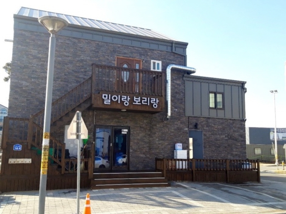 밀이랑보리랑은 충청남도 아산시 배방읍 장재리에 있다. 현대적인 외관과 깔끔한 분위기를 연출하는 인테리어가 눈에 띈다. 대표 메뉴는 비빔밥과 수제비가 함께 나오는 열무비빔밥이다. 구수한 맛의 들깨수제비, 육수가 개운한 바지락칼국수도 많은 사람이 찾는다. 매년 6~8월 이외에 판매하는 팥칼국수와 팥옹심이, 여름에만 맛볼 수 있는 서리태콩국수도 인기가 많다.