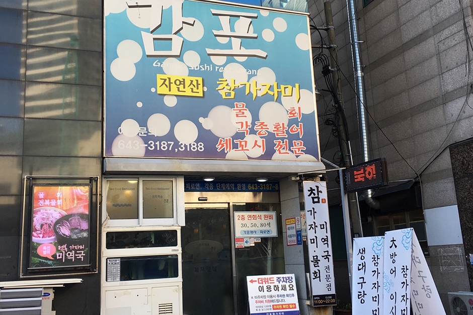부산 범일동에 있는 감포참가자미는 자연산 활어 전문점이다. 인근 범일역, 좌천역이 있어 접근성이 좋다. 1층, 2층으로 운영하는 감포참가자미는 각종 행사, 피로연을 할 수 있는 30, 50, 80석의 단체석이 완비되어 있다. 100% 자연산 어종인 참가자미는 수심 깊은 곳에 서식하여 비브리오균이나 세균의 영향을 받지 않는다. 꼬들꼬들한 식감과 고소한 맛이 있는 참가자미는 흰살생선으로 소화 흡수력이 좋다. 자연산 활어 전문점인 감포참가자미는 새콤달콤 시원한 물회 맛집으로도 알려져 있다. 싱싱한 회와 각종 채소, 밥, 면이 나와 푸짐하게 먹을 수 있다.