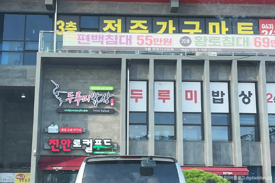 전주 덕진구 호성동에 있는 두루미밥상은 넓은 대형 주차장을 보유하고 있는 가성비 좋은 한정식 맛집이다. 물 좋고 산 좋은 진안에서 공수한 신선한 재료들을 사용해 어머니의 손맛을 재현한 음식들을 선보인다. 최소한의 좋은 재료만을 넣고도 충분히 맛을 내는 것이 유일한 비법이라 소개하며, 1~2만 원대의 가성비 좋은 특별한 한정식을 제공한다. 실내 공간이 넓어 돌잔치, 생일 모임, 환갑 모임 등을 할 수 있다. 계절에 따라서 제철 재료를 이용하기 때문에 두세 가지 기본 찬이 변경될 수 있다.