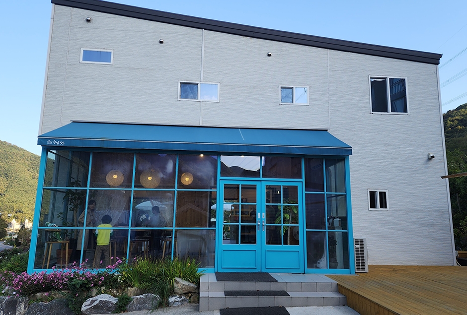 의령군 수암로 한적한 길에 있는 수암 55는 잔디 정원과 테라스가 있는 카페이다. 화이트 컬러의 외벽에 포인트 컬러가 있는 수암 55는 사진 찍기 좋은 곳이다. 잘 가꿔진 야외 정원에서는 스몰 웨딩을 진행하기도 한다. 깔끔한 실내는 감각적인 가구들과 조명으로 아늑한 분위기를 갖추었다. 야외 공간에는 여러 좌석들이 마련되어 있어 골라 앉는 재미가 있고, 단체석이 있어 가족 단위로 방문하기에도 좋다. 편안한 분위기의 수암 55는 통창으로 멋진 자연 경치를 볼 수 있고, 공간 곳곳 포토존이 있어 즐길 거리가 있다. 커피와 음료, 디저트뿐 아니라 수암 55에는 의령 특산품 의령떡빵도 함께 판매하고 있다.