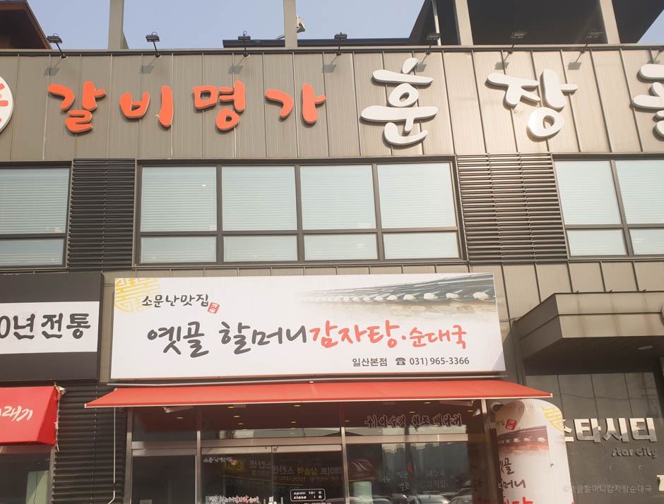 옛골할머니감자탕순대국은 일산동구 식사동에 있는 뼈해장국 감자탕집이다. 이 집의 시그니처 메뉴는 산더미 감자탕인데 층층이 쌓여 있는 뼈 위로 시래기가 듬뿍 올라가 있는데 뼈도 크고 살도 많이 있다. 진한 국물과 고기를 다 먹고 나면 밥을 볶아 준다. 또 다른 인기 메뉴인 뼈해장국은 두툼한 고기들이 붙어있는 뼈와 우거지에 들깻가루를 듬뿍 넣어서 고소하고 담백하게 끓여낸다. 기본 반찬은 셀프바에서 리필할 수 있다.