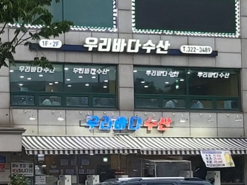 우리바다수산은 망원역 인근 횟집이다. 이곳은 광어회를 비롯하여 농어회, 연어회, 도미회, 대방어 등 다양한 회를 맛볼 수 있다. 또 여러 회를 같이 먹을 수 있는 세트메뉴도 있다. 비교적 늦은 시간까지 영업을 하여 늦은 시간에도 회를 즐길 수 있으며, 포장과 배달도 가능하다.