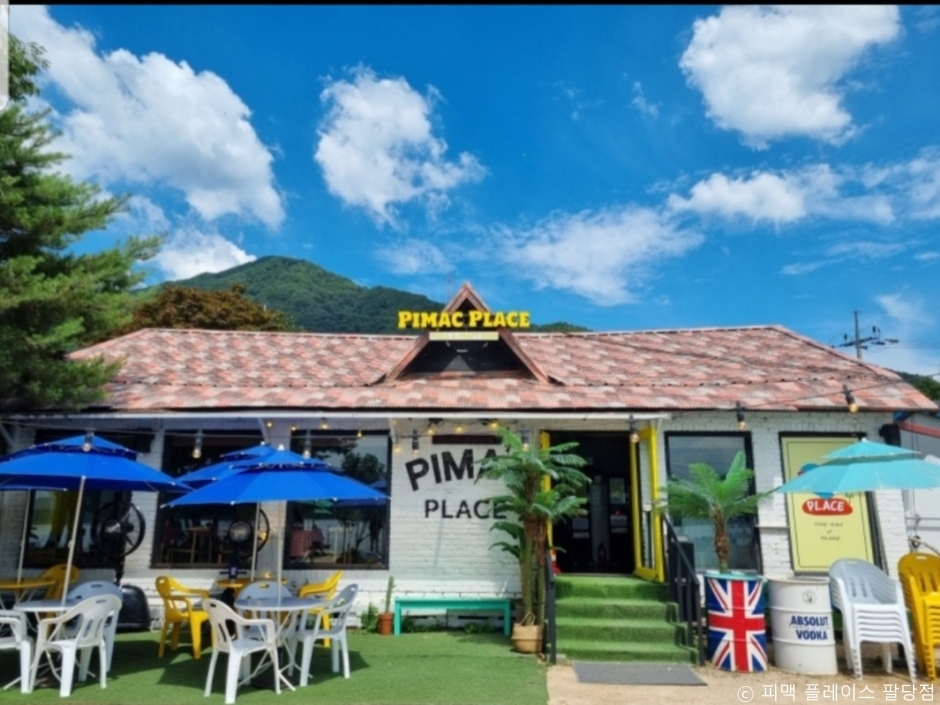 지붕 위 삼각형에 ‘PIMAC PLACE’라고 상호가 적혀있다. 피자와 맥주를 먹는 곳이라는 뜻이다. 야외석에서 강 위로 지는 노을을 감상할 수 있다. 피자, 감자튀김, 샐러드, 옛날 통닭, 떡볶이 등을 맛볼 수 있다. 남은 음식을 포장해 갈 수 있는 셀프 포장대가 있다. 주차장이 매장 앞에 있다.