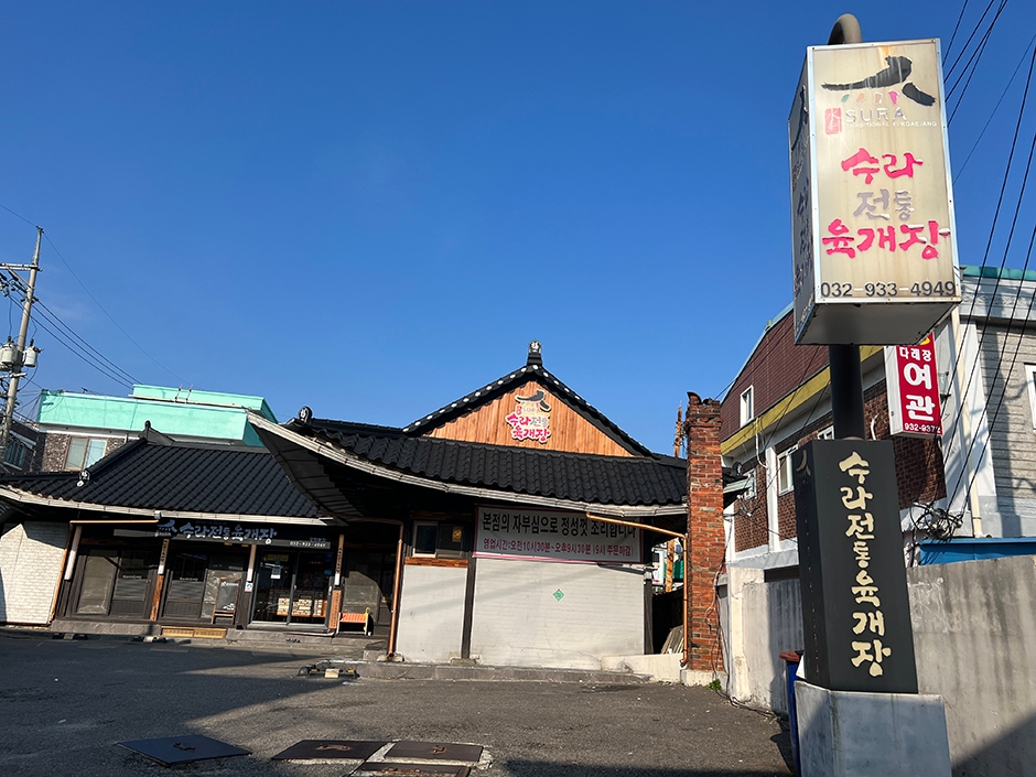 수라전통육개장은 강화도 강화군청 건너편에 있다. 자체 주차장을 보유하고 있고 옆에 남문 공영주차장이 있어 차량을 이용 방문 시 편리하다. 이곳은 육개장 전문 맛집이다. 매장은 기와지붕으로 되어 있으며 신발을 벗고 매장 내부로 들어간다. 매장 안은 기본 4인 입식 테이블로 구성되어 있고 내부는 넓어 단체 모임, 가족 모임 등이 가능하다. 주메뉴는 옛날정통육개장, 육개장설렁탕, 부대육개장, 육개장칼국수+밥 등이 있다. 사이드 메뉴는 보쌈한판, 메밀고기 왕만두, 철판떡갈비, 숯불갈비만두 등이 있다. 이 밖에 전골류, 무침류 등 다양한 메뉴가 있다.