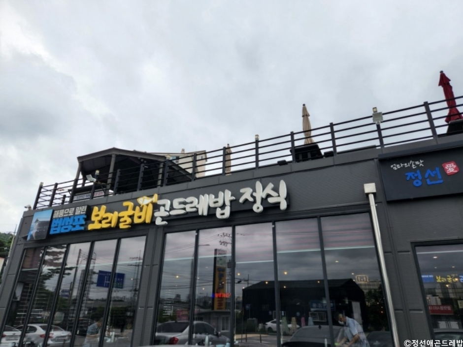 정선애곤드레밥은 용인 보정외식타운에 있는 맛있는 밥집이다. 곤드레밥정식을 시키면 한상 가득한 밑반찬과 가자미구이, 수제 웰빙 두부가 나온다. 이 식당의 특징은 생선구이와 두부를 제외한 모든 반찬을 뷔페식으로 차려 놓고 마음껏 즐길 수 있게 제공하는 것이다. 반찬으로 제공되는 제육간장볶음과 같은 고기 요리도 리필이 되니 가성비 맛집이라 할만 하다. 기본 차림상 외에 일품요리를 추가하고 싶다면 고등어 곤드레밥 정식이나 갑오징어 다리볶음, 곤드레밥 정식을 주문하면 된다. 8살 이상은 1인분 주문을 해야 한다. 8세 미만의 어린이를 위해 곤드레를 넣지 않은 흰쌀로 지은 솥 밥을 별도로 판매한다. 직접 만든 웰빙 두부가 인기가 좋아 포장 판매도 한다. 식당에서 직접 만들어 사용하는 양념, 건나물, 김치나 장아찌는 모두 각각 포장해 판다. 주차장은 넓은 편이지만, 늘 사람이 많아 예약하고 식사시간보다 조금 일찍 도착하는 것이 좋다.