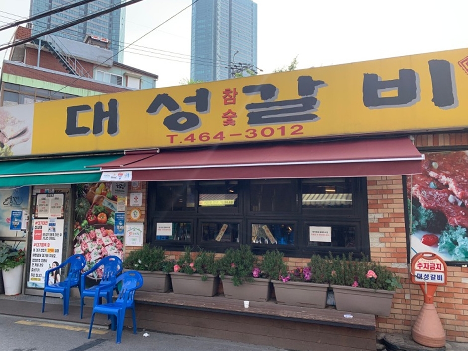 대성갈비는 지하철 2호선 뚝섬역 8번 출구 성수1가 2동 행정복지센터 부근에 있다. 매장이 좁은 골목길에 있어 주차장이 없다. 자동차 이용보다는 대중교통 이용이 편리하다. 대성갈비는 뚝섬에 오래된 노포다. 여러 방송사 TV 맛집 프로그램에 소개되면서 돼지갈비 맛집으로 유명세를 더하고 있다. 운영시간이 특이해서 12시부터 오후 1시까지는 백반 점심 손님들만 받는다. 1시부터 2시 30분까지 고기 손님들을 받는다. 중간의 브레이크 타임이 있고, 오후 4시 30분부터 저녁 9시까지 저녁 고기 손님들을 받는다. 대표 메뉴는 돼지갈비, 목살, 소갈비, 삼겹살 등이 있다. 주변에 별빛정원, 서울숲, 송정제방공원이 있어 둘러보기 좋다.