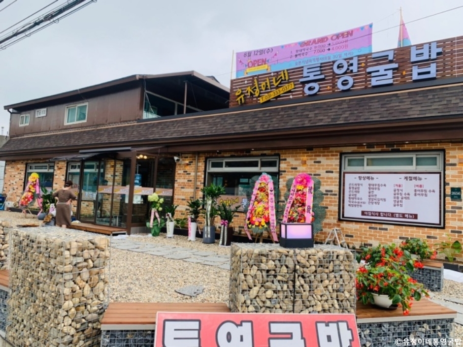 유정이네통영굴밥은 용인시 양지 42번 국도에 있는 굴 요리 맛집이다. 멀리 통영까지 가지 않아도 경기도에서 통영의 신선한 생굴과 굴 요리 음식을 맛볼 수 있는 집이다. 밥은 돌솥에 지어 갓 나온 밥을 제공하고 있으므로 도착 10분 전에 미리 전화하면 때맞춰 먹을 수 있다. 굴밥 외에도 곤드레밥, 간장게장과 같은 밥도둑 메뉴가 많다. 단품 식사를 시키면 4가지 밑반찬과 비빔밥을 해 먹을 수 있도록 넓은 그릇에 참기름이나 김 가루를 넣어 제공한다. 각 메뉴는 단품도 있고, 정식으로 주문할 수도 있다. 푸짐하게 다양한 음식을 맛보고 싶다면 정식 메뉴를 권한다. 넓은 부지에 독립적인 건물과 주차장이 있어 이용이 편리하다. 최근에 신축해서 이전한 식당이라 매장이 깔끔하고 한옥 스타일의 인테리어가 고급스럽다. 양지파인리조트나 지산포레스트 리조트가 근처에 있어 가족 나들이 후 식사하기 좋은 곳이다.