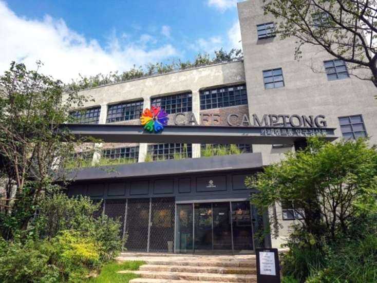 카페캠프통은 지하철 수·인분당선 압구정로데오역 5번 출구 압구정로데오거리에 있다. 연면적 5,620㎡의 대형 카페로 주차는 매장 지하 주차장에 할 수 있다. 이곳은 도심 속 작은 숲 정원에 있는 것 같은 느낌으로 인테리어를 했다. 안마의자, 수면실 등을 갖춘 휴식 공간과 6인실에서 80인실까지 입장할 수 있는 다양한 크기의 미팅룸 및 업무 공간을 갖추고 있어 새로운 방식의 문화, 업무, 휴식을 함께 즐기는 복합문화공간이다. 4층 건물로 각층에 도토리, 아일랜드, 포레스트, 마운틴 등의 이름이 있는 독특한 카페다. 5층은 루프탑이다. 이곳의 인기 메뉴는 커피, 콘 치즈 햄파니니, 바비큐 치킨 파니니, 무하과 햄 치즈 파니니이다. 카페 주변에 도산공원, 압구정 카페 골목, 서울선릉과정릉(세계문화유산), 잠실종합운동장, 유명 테마 놀이공원, 잠실한강공원이 있어 연계 관광을 할 수 있다.
