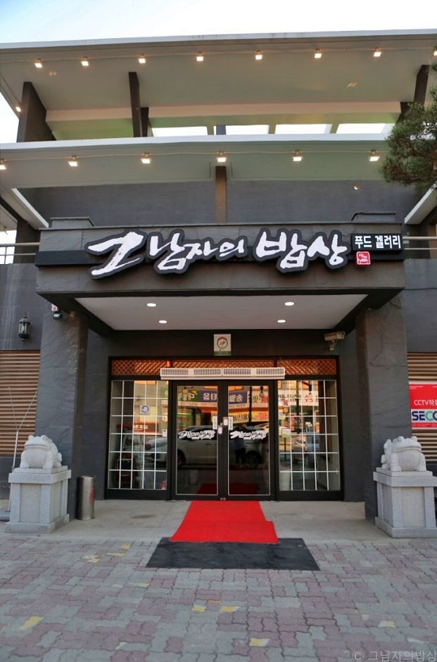 그 남자의 밥상은 경기도 이천에 있는 숯불갈비 전문점이다. 깔끔하고 쾌적한 인테리어의 내부는 넓고 개방감이 좋다. 개별 방들이 작은방부터 대형 단체석까지 크기별로 많이 있어서 조용히 식사하기에도 좋고 회식 자리에도 좋다. 대표메뉴인 돼지숯불갈비는 달면서 짭조름한 양념에 숙성시킨 고기에, 숯불 향이 덧입혀져 맛이 좋다. 오겹살도 인기 메뉴인데 육질이 좋고 고소한 맛이 있다. 밑반찬은 잡채, 탕수육, 양념게장 등 다양하게 나온다. 양념게장을 제외한 나머지 반찬들은 추가할 수 있다. 생갈비도 부드럽고 고기 맛이 좋아 인기다. 직원이 직접 고기를 구워줘 편하게 식사할 수 있다. 평일 낮에는 점심 정식 메뉴도 있다. 4km 이내에 미란다스파플러스, 설봉공원, 5km 이내에 롯데 프리미엄 아웃렛, 복하천수변공원, 더이진, 안흥지가 있고, 이천 테르메덴과도 멀지 않다.