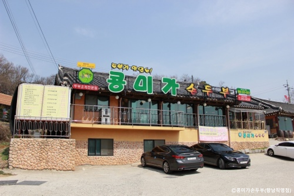 콩미가손두부는 화성 지역을 대표하는 두부 맛집이다. 매일 하루에 두 번 콩물과 두부를 직접 만들어 식당의 모든 음식에 사용하고 있다. 두부를 넣은 찌개류나 전골 음식, 순두부 요리, 생두부 김치나 두부보쌈, 청국장, 콩비지, 콩국수 등 두부나 콩으로 만들 수 있는 모든 음식을 메뉴로 제공한다. 여러 가지를 맛보고 싶다면 콩미가 정식을 주문하면 된다. 정식 요리에서 맛본 두부 요리를 더 먹고 싶다면 추가로 주문할 수도 있다.