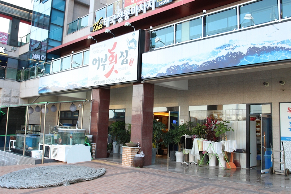 거제 소노캄 근처에 있는 어부횟집은 현지인이 강력 추천하는 횟집이다. 소노캄 거제 리조트 앞에 있어 연예인들이 방문한 흔적들로 벽면이 가득하다. 선장이 직접 잡아 올린 생선으로 회를 치는 유명 맛집이며 100명이 한꺼번에 식사할 수 있는 규모의 대형 식당이다. 기본 반찬만으로도 식사를 푸짐하게 먹을 수 있을 듯, 푸짐한 양과 맛으로 맛집의 모양새를 갖추고 있다. 싱싱한 재료로 만든 거제의 맛을 제대로 느낄 수 있으며 번데기, 생선구이, 도토리묵, 어묵 가사리, 다시마, 샐러드, 돈가스, 어묵탕 등 쉴 사이 없이 기본 반찬들이 제공된다. 전용 주차장이 있어 편리한 이용이 가능하다.