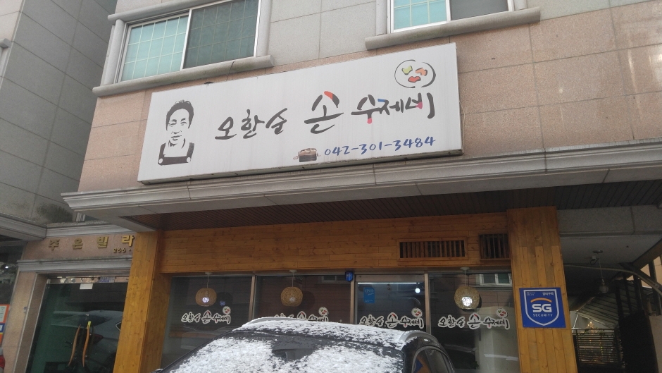 오한순 손수제비는 대전광역시 서구 갈마동에 있다. SBS 시사 교양 프로그램 생방송 투데이에 소개된 바 있다. 현대적인 외관과 깔끔한 분위기를 연출하는 인테리어가 눈에 띈다. 대표 메뉴는 민물새우를 넣고 끓인 육수 덕분에 시원함을 느낄 수 있는 민물새우 손수제비다. 이 밖에 부추 수제비, 부추전, 수육 등이 준비되어 있다. 민물새우 손수제비, 수육, 부추전을 한꺼번에 맛볼 수 있는 세트 메뉴도 있다.