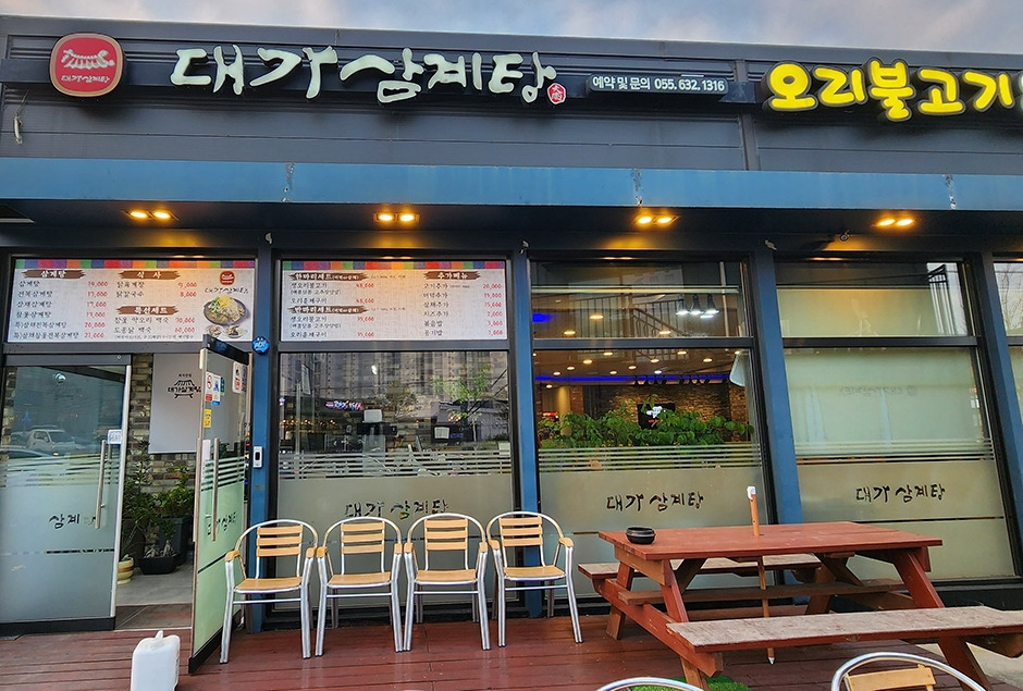 거제 대가삼계탕은 고현 시외버스터미널 근처에 있어서 접근성이 좋다. 영계닭 한 마리가 통째로 들어가 있고, 안에는 찰밥도 같이 들어가 있어 든든한 한 끼 보양식이다. 얼큰한 국물과 담백한 살코기 맛으로 유명한 가게로 거제에서 삼계탕 맛집 하면 대가삼계탕 손에 꼽힌다. 밑반찬들도 깔끔하게 잘 나온다. 테이블 간 거리도 여유 있어 편하게 이용할 수 있고 내부는 깔끔하며 개별 룸이 완비되어 가족 식사, 회식, 단체 모임으로 오기 좋은 곳이다. 주차장도 넓고 거제 관광모노레일과 거제 포로수용소 유적공원 등이 인접해 있어 함께 둘러보기 좋다.