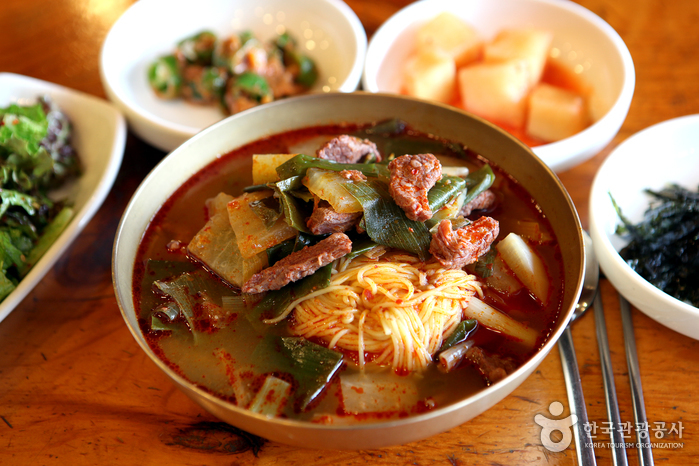소고기국밥 / 육국수 / 냉콩국수 / 냉면 / 해물파전 / 육회비빔밥 / 돌판떡갈비 등