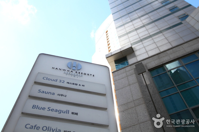전 객실에서 푸른 바다를 볼 수 있는 한화리조트 해운대는 32층의 초고층 호텔식리조트로 서 416실의 객실과 연회장, 세미나실, 사우나 등 각종 부대시설을 갖추고 있다. 국내 최고의 전망과 젠 스타일의 인테리어, 그리고 라이브 클래식 음악이 있는 32층 스카이라운지는 부산의 명소로서 많은 고객들의 사랑을 받고 있다. 또한 최근에 완공된 아름다운 광안대교를 가장 근거리에서 감상할 수 있는 곳이기도 하다. 현대적인 감각의 인테리어와 편의성을 갖춘 객실은 고객의 취향에 따라 이용할 수 있도록 더블 베드룸, 트윈베드룸, 온돌형 한실 등 다양한 형태로 구성되어 있다. 특히 한화리조트 해운대는 객실 내에서 인터넷 이용이 가능하고, 업무용 테이블이 비치된 비즈니스룸과 PC 등의 사무기기와 상담시설이 완비된 비즈니스센터를 운영하고 있다.