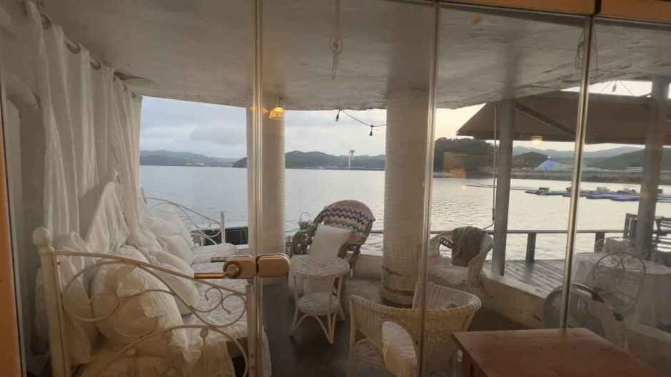 화이트하우스의 실내공간은 엔틱한 가구와 아기자기한 소품의 화이트톤 인테리어로, 아름다운 카페를 배경으로 사진을 찍기가 좋은 곳이다. 야외로 나가서 테라스에 앉으면 아름다운 윤슬을 바라보며 예당호의 풍경을 마음껏 만끽할 수 있으며 예당호가 만수위 시 테라스가 물 위에 떠 있게 된다.