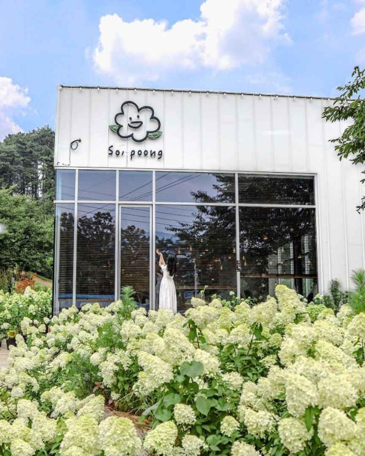 카페 소풍은 5000평 규모의 정원카페로 피크닉과 모닥불 불멍이 가능하다. 샤스타데이지, 수국 등의 꽃들이 계절별로 조성되어있는 넓은 포토존과 자두에이드, 복숭아에이드, 살구차 등 직접 재배한 과일로 청을 담가 제조한 음료들이 인기가 많다. 아이들과 강아지들이 뛰어놀 수 있는 넓은 잔디밭이 형성되어 있으며, 잔디밭 위의 거대한 왕바구니는 소풍의 대표 구조물이다. 노란색 트리하우스와 소나무 숲 전망대에서는 시원한 북한강 전망이 아름답게 내려다보이며, 카페 실내 공간은 총 세동으로 그중 애견동반가능 건물은 한동이다.