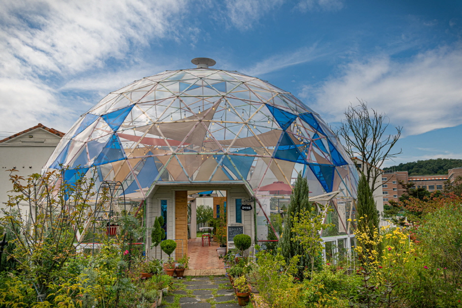 독특한 돔과 다양한 꽃이 어우러지는 식물 정원, 투명돔과 목조돔 2개의 돔건축으로 만들어진 카페플라워돔은 카페 주인인 부부가 4년을 걸쳐 가꾼 정원으로 250여 종의 독특한 꽃과 향기 나는 나무가 있는 힐링과 치유의 공간이다. 360개의 삼각형이 모여 돔 형태가 만들어진 지오데식 건축양식으로 처음 보는 유니크한 돔 카페로 알려져 있다. 하늘의 구름, 노을과 어우러진 환상적인 수채화 같은 정원과 투명돔의 조화는 오픈한 지 4개월 만에 여행의 추억을 남기고 싶은 최적으로 공간으로 알려졌다.