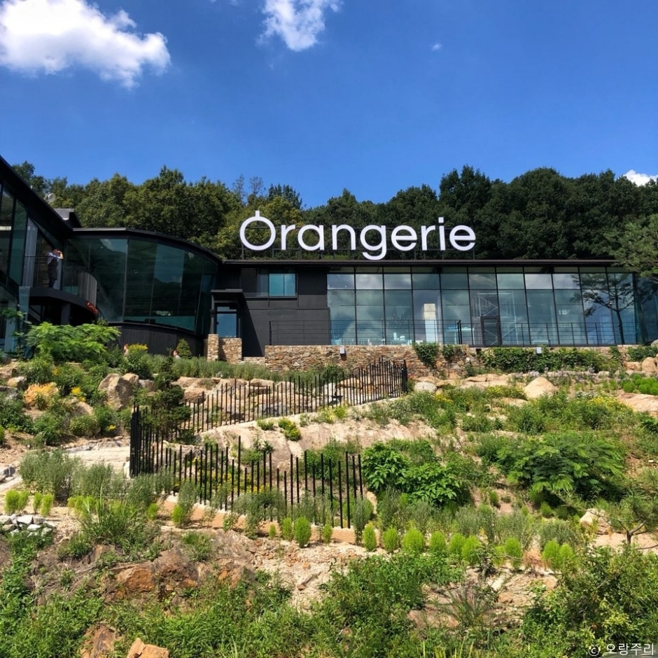 오랑주리는 입구부터 화초가 가득한 대형 식물원 카페이다. 이곳은 대부분의 좌석이 식물들을 바라볼 수 있도록 배치되어 있으며 특히 2층 안쪽으로 돌출된 자리에서는 탁 트인 전망과 바로 앞에 펼쳐진 식물원을 바라보며 쉬어갈 수 있다.