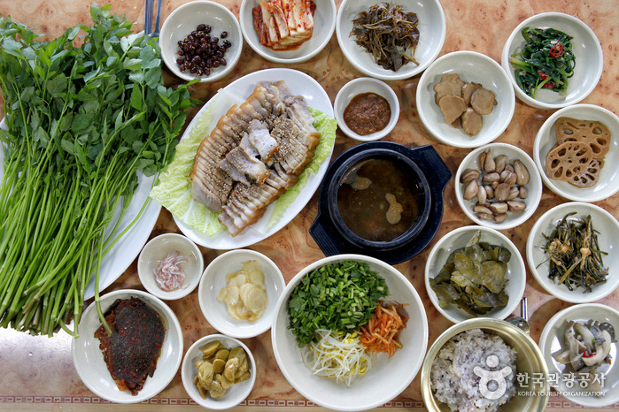 한재미나리가 가장 연하고 맛있을 때만 영업을 하는 주인장은 5월부터는 산으로 들로 다니며 산나물을 캐다가 장아찌를 만들어 둔다. 연근, 돼지감자, 생강, 마늘, 달래, 깻잎, 취나물, 감, 토마토, 양파, 다시마, 양배추 등 수십 가지장아찌를 담가 그때그때 밥상에 함께 내어 미나리와 함께 풍족한 한상이 차려진다.