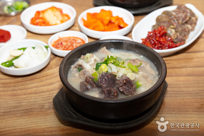 속초관광수산시장 골목에 위치한 동해순대국은 40년 가까운 전통을 자랑한다. 1984년 처음 문을 열었으며 담백하고 깔끔한 순댓국을 맛볼 수 있다. 주메뉴로 순대 국밥과 소머리국밥, 돼지 내장국밥 등이 있으며 아바이순대, 오징어순대 등 속초 지역 별미도 내놓는다. 순댓국은 잡내 없이 깔끔하게 우려낸 육수와 고소한 순대가 어우러져 누구나 부담 없이 즐길 수 있다. 조금 더 색다른 맛을 즐기고 싶다면 아바이순대국밥을 추천한다. 야채와 고기, 콩 등 순대 속이 꽉 찬 독특한 순대 국밥이 별미다. 밑반찬으로 나오는 깍두기와 김치도 이곳에서 직접 담근다. 김이 모락모락 나는 뚝배기에 담겨 나오는 순대 국밥과 계란을 입혀 노릇하게 부치는 오징어순대 한 상이면 입안이 다 행복해진다.