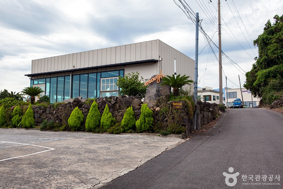 애월 카페 이너프는 [It is good enough for today. : 오늘은 그것으로 충분하다.]에서 따온 이름이다. 대표 메뉴는 모어댄 라떼와 직접 담근 토마토 청으로 만든 토마토 바질 에이드이다. 아이들이 좋아하는 우유아이스크림과 한라봉청이 올라간 아이스크림도 준비되어 있다. 본관과 야외 공간에서 커피를 마실 수 있다. 별관은 스튜디오로 사용하고 있어 실내 관람이 어렵지만 별관의 빨간색 지붕이 포인트가 되어 예쁜 사진을 남길 수 있다.