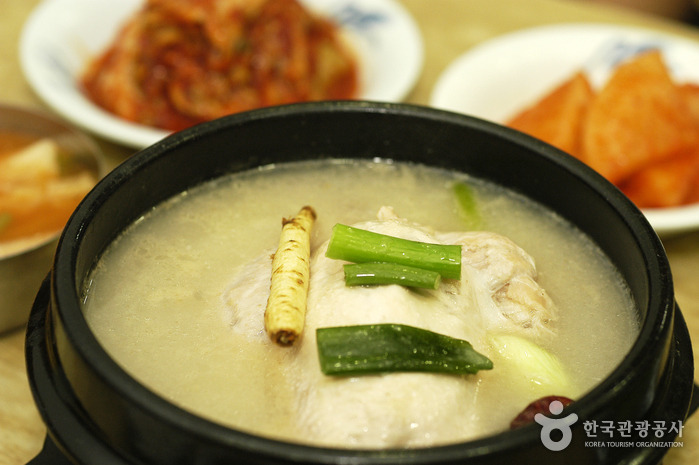 허름한 외관에 건물 전면으로 문도 없이 바로 테이블이 셋팅되어 있다. 한쪽의 테이블을 두고 복도처럼 생긴 입구를 지나면 문과 내부의 모습을 볼 수 있다. 내부는 보통 한식집처럼 낮은 테이블을 놓고 앉는 온돌방으로 깔끔한 느낌이다. 이 집의 메뉴는 삼계탕. 뽀얀 국물과 인삼 한 개 대추 하나를 띄운 삼계탕과 깍두기, 나박김치 등의 반찬이 나온다. 다 먹을 때까지 기름이 엉기지 않도록 뚝배기에 담겨져 나온 삼계탕은 진한 국물과 부드러운 닭의 육질이 일품이다. 보통 삼계탕의 닭은 조금 덜 자란 영계를 쓰는 편으로 크기가 조금 작은 대신 육질이 부드럽다. 안에는 찰밥이 들어 있어 양이 많지는 않지만 속이 든든하다.