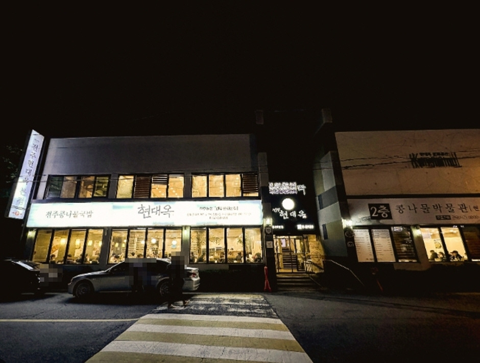 현대옥본점은 전주권 콩나물국밥식당들 중 영업력에서 독보적 1등으로 평가받고 있다. 대표메뉴는 (토렴응용식)전주남부시장식콩나물이며 (전통직화식)펄펄끓인식콩나물국밥 취급으로 각기 제맛을 가진 두 종류의 콩나물국밥을 한자리에서 즐길 수 있다. 이 밖에 오징어튀김, 부산땡초어묵, 순대모둠, 아귀순살튀김 등 저렴한 가격대의 다양한 곁들임메뉴와 현대옥스테이크, 햄볶음밥 등 가족외식에 적합한 어린이메뉴들이 있다. 콩나물아이스크림, 콩나물박물관, 콩나물머리핀 등 식도락의 재미와 볼거리가 있다.