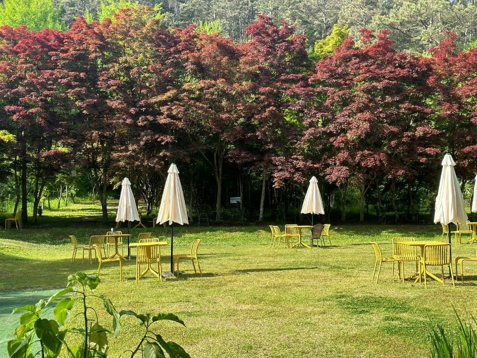 카페로 들어서는 입구부터 숲에 들어선 듯한 느낌을 받는 카페다. 주차 공간이 넓고, 드넓은 정원이 펼쳐져 있어 아이들과 함께 방문하기 좋다. 야외 테이블도 갖추고 있어 야외 나들이를 즐기는 듯한 기분도 만끽할 수 있다. 특히 아이들이 뛰어놀 수 있는 공간들이 마련되어 있어, 가족 단위 고객들이 즐겨 찾는다. 실내는 아기자기하면서도 세련되게 꾸며져 있으며 각종 모임 장소로도 활용되고 있다. 창밖으로 펼쳐지는 자연경관 뷰도 인상적이기 때문에, 차 한 잔 즐기면서 힐링하기 적합하다. 대표 메뉴는 땅콩의 너티함을 베이스로 옥수수의 구수한 후미가 인상적인 아메리카노와 자연에서 5년 숙성시킨 황매실차, 수제 청으로 만든 한라봉에이드다. 이외 캐러멜마끼아또, 자몽에이드, 젤라토, 피자 등도 맛볼 수 있고, 나주남평은행나무길과 인접해 있어 자연 속 힐링을 하기 좋다.
