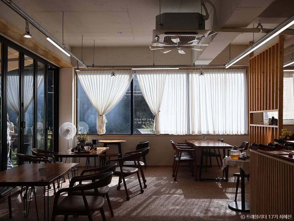 김해에 위치한 ‘장군차 산들’은 유기농 농법으로 직접 차나무를 재배하는 차 전문 공간이다. 넓고 푸른 녹차밭이 펼쳐진 풍경 속에서 신선하고 향긋한 차를 즐길 수 있는 곳이다. 이곳에서 제공하는 차는 유기농 재배를 통해 깊고 진한 맛을 자랑하며, 차와 잘 어울리는 수제 디저트들도 함께 맛볼 수 있다. 대표 메뉴로는 장군차 녹차와 유기농 말차라떼, 밀크티 콜드브루 등이 있고 수제 다식으로는 수제 양갱과 수제화과자, 앙버터 모나카 등 다양한 메뉴가 있어 취향에 맞게 선택해 즐길 수 있다. 가게 내부는 한적하고 편안한 분위기로 조성되어 있으며, 큰 창을 통해 녹차밭을 바라보며 여유롭고 조용한 시간을 보낼 수 있다.
