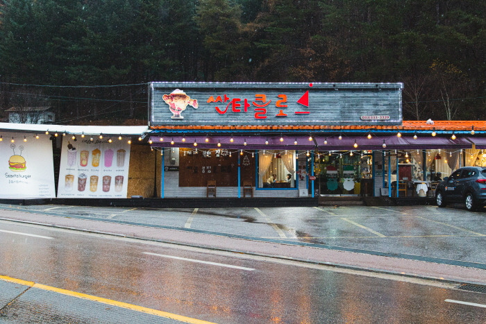두툼한 고기 패티가 인상적인 싼타버거를 맛볼 수 있다. 면온 IC에서 휘닉스파크 방향으로 2㎞정도 올라오면 우측에 위치해 있다. 사장님이 혼자 주문 접수 및 조리·서빙까지 하는 1인 운영샵이다. 조리 중에는 주문이 어렵기 때문에 자리를 잡고 앉아서 기다리면 먼저 온 순서대로 주문을 받아주신다. 대표 메뉴는 싼타버거로 버거 속 두툼한 고기 패티와 치즈가 흘러넘친다. 세트에 포함되어 있는 감자튀김은 겉은 바삭하고 속은 촉촉해 버거와 함께 먹으면 찰떡궁합을 자랑한다.