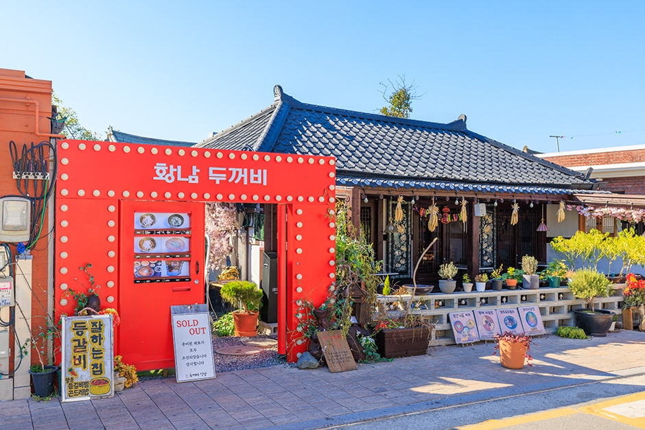 황남두꺼비식당은 경상북도 경주시 황남동에 있다. 한옥의 고풍스러운 멋과 더불어 현대적인 분위기의 외관이 돋보인다. 예스럽고 감성적인 분위기를 연출하는 인테리어도 눈에 띈다. 대표 메뉴는 매운 등갈비찜이며 간장 등갈비찜, 묵은지 등갈비찜도 인기가 많다. 이 밖에 벌교 꼬막 무침, 경주 한우 육회, 수제 떡갈비 등이 준비되어 있다. 경주 IC에서 가깝고 주변에 첨성대를 비롯해 국립경주박물관, 경주교촌한옥마을 등 경주의 유명 관광지가 많다.