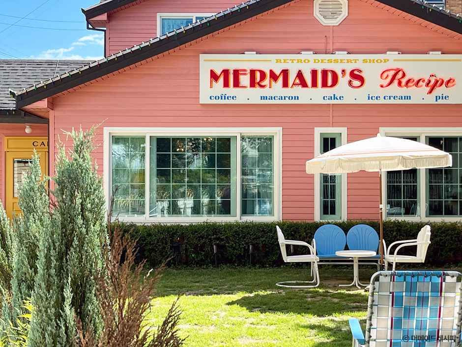 머메이드레시피는 2017년 망원동에서 처음 개업한 수제 디저트 전문점이다. 브런치와 케이크, 마카롱, 아이스크림 등 모든 메뉴는 매장에서 정성 들여 직접 만든다. 시그니처 디저트인 조가비 마카롱은 특허를 보유하고 있어 오직 머메이드레시피에서만 맛볼 수 있다. 60년대 미국 레트로풍의 독창적인 인테리어로 아이돌 뮤직비디오, 화보 등 촬영지로도 유명하다.