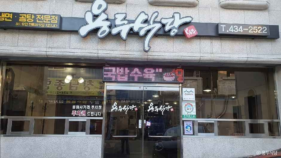 용두식당은 경북 김천시에 위치하고 있는 냉면 전문점이다. 국내산 한우를 사용하여 육수를 우려내어 정성스럽게 만드는 물냉면, 비빔냉면은 용두식당의 대표 메뉴이다. 용두식당 냉면은 메밀, 전분 등을 제분하여 반죽하고, 면을 뽑는 모든 과정을 직접하고 있다. 돼지고기 수육 또한 국내산 생돼지 고기를 사용하여 잡내 없이 부드러운 맛이 특징이다. 이외에도 불고기전골과 곰탕 등 다양한 메뉴가 준비되어 있다. 식당 내부가 크지는 않지만 충분한 좌석이 준비되어 있으며, 혼밥하는 사람들도 편한 식사가 가능하다.