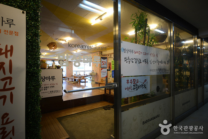 경기도 파주시 파주출판 단지에 위치한 ‘밥상 마루’는 돼지고기 요리 전문점이다. 대표 메뉴는 왕통 삼겹살이며, 김치전골도 인기가 좋다. 메뉴 주문 시 기본찬으로 김치와 겉절이, 샐러드, 어묵볶음 등 간단하게 준비가 된다. 이곳은 점심시간이면 인근 파주출판 단지에서 방문하는 이들로 북적인다. 매장 내부는 좌식과 입식 테이블로 이루어져 있어 편한 좌석에서 식사가 가능하다.