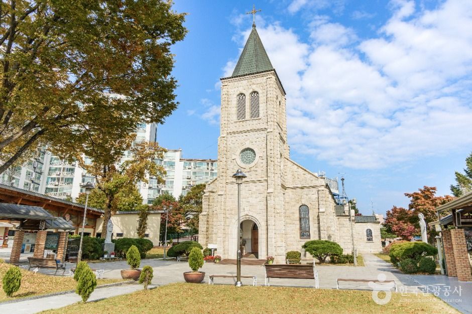 죽림동성당은 춘천의 첫 성당이자 천주교 춘천교구 주교좌성당이다. 죽림동성당 입구 언덕에는 청동으로 만든 예수 성심상이 있는데, 높이 3.5m, 너비 3m로 국내 최대 규모다. 예수 성심상은 세상을 포용하듯 양팔을 벌린 채 서 있다. 성당의 중앙 종탑 십자가는 서울대교구 주교좌 명동대성당과 똑같은 모양인데, 죽림동성당이 서울대교구와 한 뿌리임을 상징한다. 죽림동성당은 한국 성당 건축에 상당한 영향을 끼쳤다. 1998년 대대적인 보수를 진행할 당시 가톨릭 미술가회 작가들의 작품을 성당에 장식했다. 죽림동성당을 한국 가톨릭 미술의 보고라고 부르는 까닭이다.