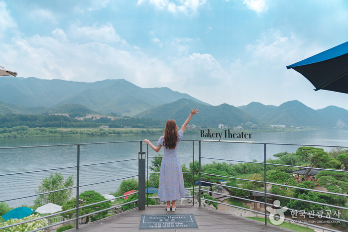 베이커리 씨어터는 남양주 북한강 바로 앞에 자리 잡은 전망 좋은 수목원 카페로 넓은 잔디와 잘 가꿔진 정원, 그리고 유유히 흐르는 북한강까지, 탁 트인 뷰가 인상적인 곳이다. 내부 공간은 2층으로 되어있고 꼭대기에는 북한강과 카페 정원을 한눈에 내려다볼 수 있는 루프탑이 있다. 테라스 자리에서는 바로 코앞에서 북한강을 볼 수 있으며, 포토존에서는 인생샷을 남길 수 있다. 대표메뉴로는 솔잎모히또가 있는데 소나무 향기를 담은 에이드 메뉴이다. 그 외에 신선한 우유 생크림을 올린 생크림라떼, 아메리카노, 밀크티 등의 다양한 메뉴가 구성되어 있다.