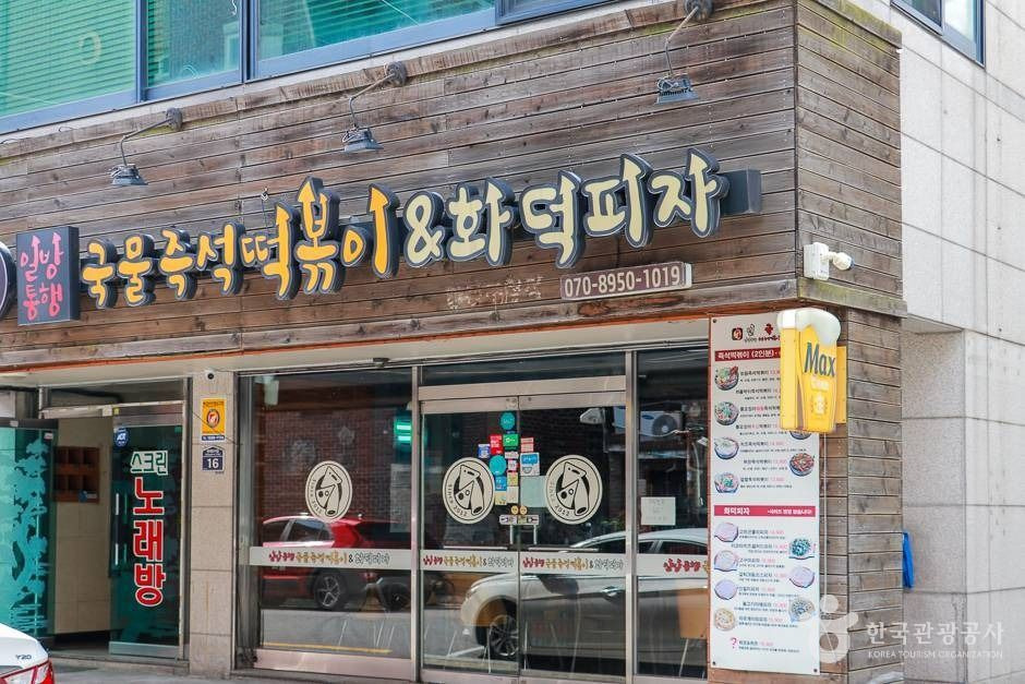 강동구청역 근처 즉석 떡볶이와 화덕 피자 전문점이다. 떡볶이는 적당한 매운맛에 콩나물이 들어있어 국물이 시원하고 칼칼함을 선사한다. 다 먹고 난 뒤 남은 양념에 볶아먹는 볶음밥이 별미다. 피자 반죽은 직접 반죽하고 72시간 저온 숙성시킨 발효 생 도우만을 사용한다. 떡볶이와 함께 먹으면 맛있는 튀김류는 카놀라유로 튀겨내어 더욱 바삭하고 고소한 맛이 특징이다.