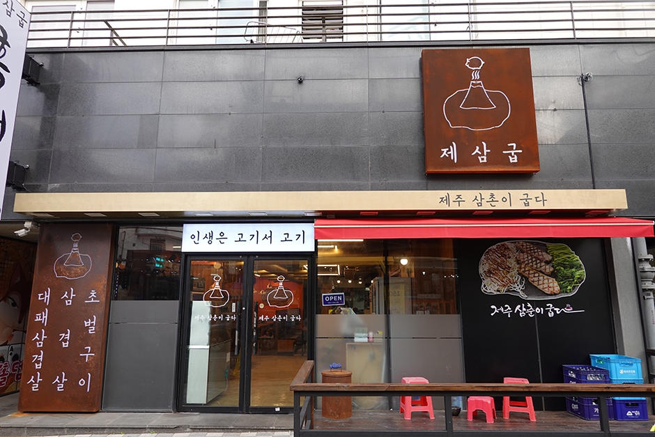 제삼굽은 제주시 연동에 있는 돼지고기구이 전문점이다. 간판에 ‘제주 삼춘이 굽다’라고 써 놓았듯 신선한 제주 돼지고기를 무쇠 불판에 직접 구워준다. 돼지를 키우는 축산업을 병행하고 있어 고기가 신선하다. 한라봉 청 쌈무, 양파장아찌, 당귀 등 셰프가 개발한 다양한 밑반찬과 소스가 제삼굽의 또 다른 별미이다. 고기를 먹고 난 후 볶음밥을 주문하면 불판 위에 밥과 김, 계란물로 한라산을 표현해 줘 눈과 입이 즐겁다. 흑돼지 오겹살, 백돼지 오겹살, 대패 오겹살이 있다.