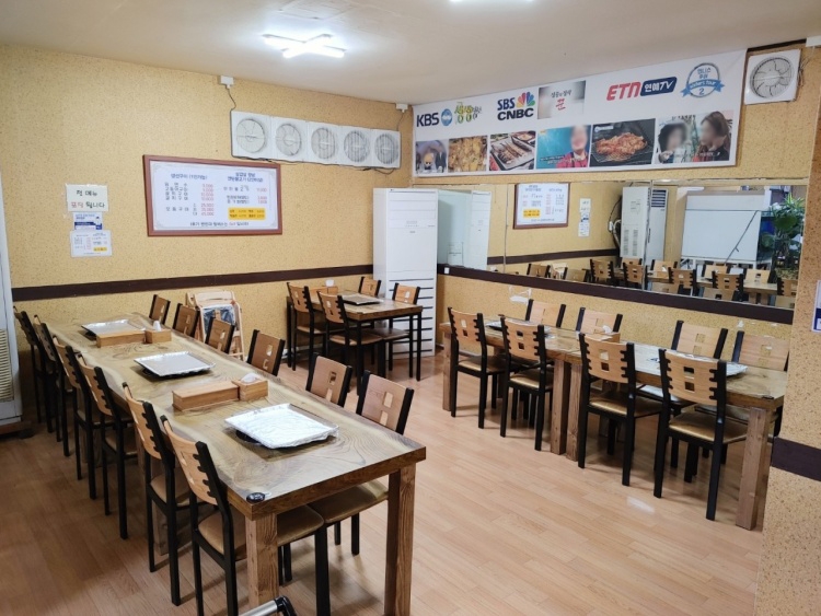 양념삼겹살 연탄구이 / 모듬생선구이 / 냉동 슬라이스 삼겹살 / 고등어구이 / 된장찌개 외