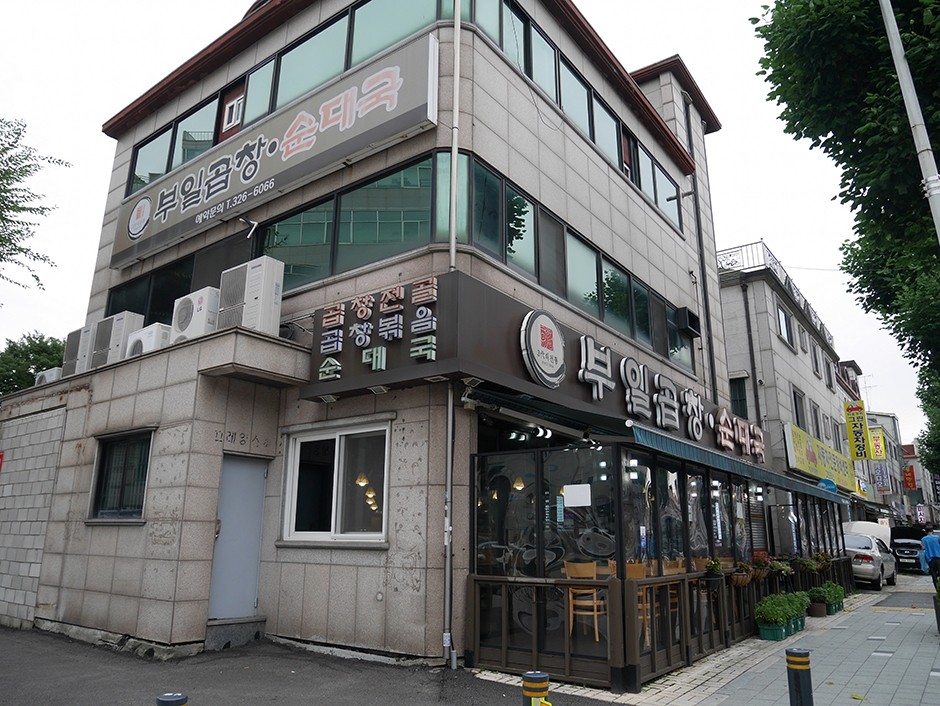 부일곱창순대국은 1984년부터 전통의 맛을 이어오는 돼지곱창전골 전문점이다. 매일 6시간 동안 곱창을 손질하고, 채소나 고춧가루 등은 엄선된 재료만 사용하며, 곱창 양념과 깍두기 하나까지 매장에서 직접 만들어 요리한다. 대표 메뉴는 곱창전골이고, 머릿고기, 술국, 순대국, 왕만두, 순대한접시 등도 있다. 백년가게로 중소벤처기업부에서 우수성과 성장 가능성을 높게 평가받아 공식 인증받은 점포이다.