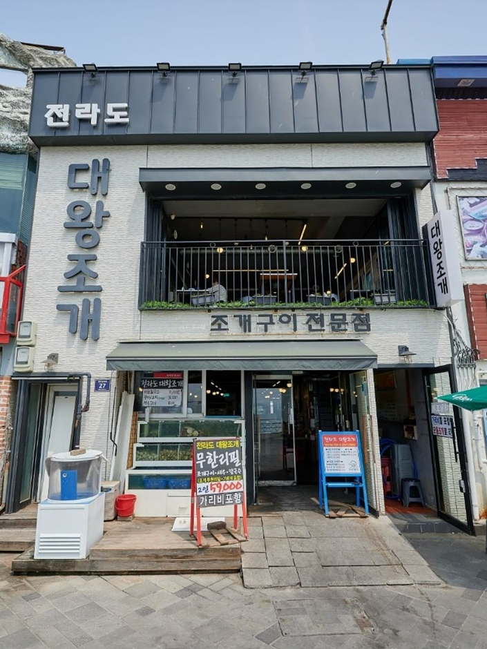 전라도대왕조개구이는 인천 중구 월미도 월미문화거리 내 월미도선착장 인근에 있다. 주차는 월미도 대형 주차장(공영주차장-주차권 지참, 주차요금 지원)에 해야 한다. 이곳은 창밖으로 바다와 선착장 뷰가 보인다. 이곳은 인원수대로 주문하면 조개구이가 무한리필 되는 곳이다. 이곳의 대표 메뉴는 A코스(2人)다. 모둠조개구이(소)+새우구이+칼국수(1)로 구성되어 있는 코스 메뉴다. 그 외에는 모둠조개구이(중), 대왕조개찜, 가리비찜구이 2인, 왕새우소금구이, 키+가+대합구이, 해물칼국수, 대왕 몽땅 스페셜 등 다양한 메뉴가 있다. 식당 인근에는 월미도유람선선착장, 인천상륙작전지점, 월미테마파크 등이 있어 연계 관광을 할 수 있다.
