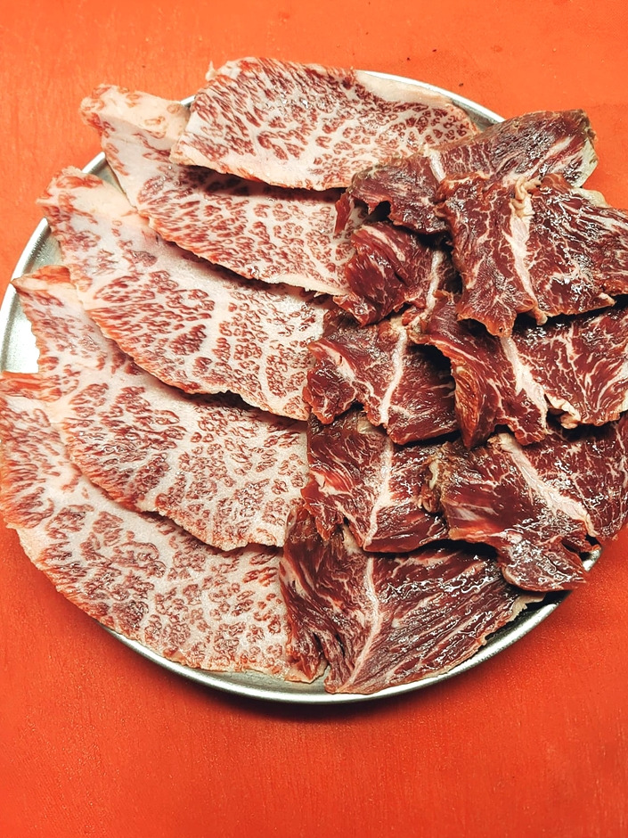 마블상회는 성수동에서 유명한 소고기 맛집이다. 대표메뉴는 진갈비살로, 환상의 마블링과 꽃의 조합 눈으로 즐기고 맛으로 즐길 수 있는 메뉴다. 황제주물럭도 인기가 많은 메뉴 중 하나인데, 황제늑간살에 수제 양념이 만나 적당한 간과 부드러운 것이 특징이다. 이외에도 쫀득한 식감의 앞양지살, 진한 육향의 흑돼지 안창살, 기름기 없이 담백한 제비추리 등 다양한 소고기 부위를 맛볼 수 있다.