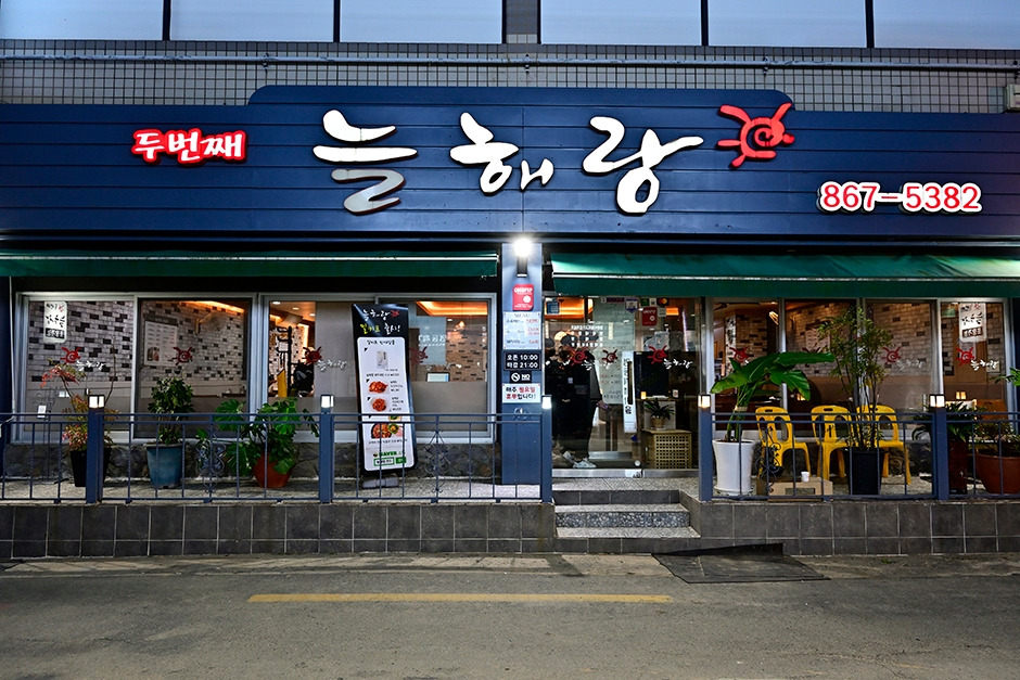 늘해랑 본점 식당은 부산지하철 양정역 부근에 위치해 있다. 늘해랑 본점이 새롭게 지점을 낸 곳이 두 번째 늘해랑이다. 본점에서 걸어서 3분 정도 떨어진 가까운 곳이다. 내부 공간은 넓은 편으로, 중앙에 사각으로 1인 바 테이블이 있고, 그 외엔 모두 테이블이 비치되어 있다. 혼밥용 테이블이 있어 편하게 혼밥이 가능하다. 특이한 것은 수육 백반 돼지국밥 국물이 내용물이 없고 육수만 나온다는 점. 돼지국밥의 고기들이 잔뜩 들어간 국밥을 찾는다면 아쉬울 수도 있다. 국물은 색은 약간 뽀얀 편으로 맛은 깔끔하고 맑은 맛이다. 전용 주차장이 있어 차로 이동하기 편리하다. 근처에 어린이대공원이 인접해 있어 함께 둘러보기 좋다.