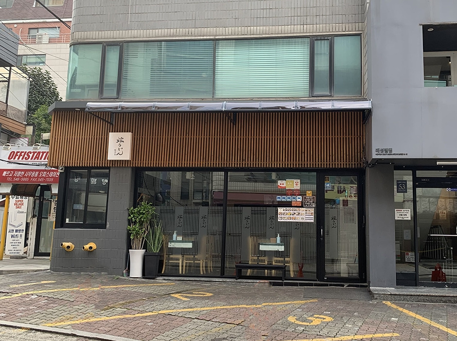 시사역 4번 8번 출구에서 560m 거리에 있고 매장은 골목안 지하1층에 있다.