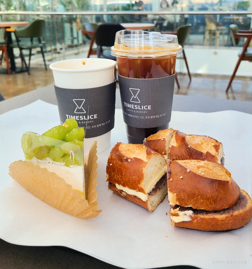 타임슬라이스는 평택 죽백동에 있는 대형 베이커리 카페다. 카페 옆쪽으로 주차 공간이 있다. 타임슬라이스 외부 모습은 유리로 된 식물원을 연상시킨다. 내부 공간은 2층으로 되어 있는데 통유리와 식물의 조화로 시원한 느낌을 준다. 2층은 지붕을 포함하여 전체가 통유리로 되어 햇살을 바로 받을 수 있다. 또한 야외테라스는 하늘이 개발되어 있으나 날씨에 따라 무빙 쉘터를 이용하여 하늘을 덮은 야외테라스를 즐길 수 있다. 주문은 1층에서 하게 되어 있고 한 켠에 베이커리 종류가 진열되어 있다. 냉동 빵도 판매하고 있어서 포장해갈 수 있다.