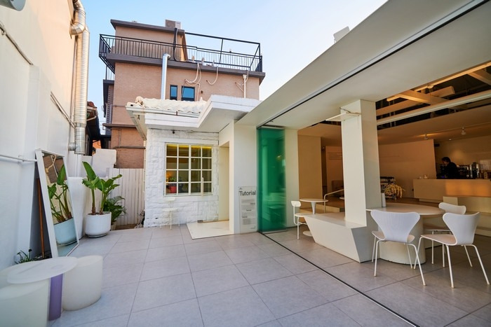 가수 자이언티와 그의 아버지가 운영하는 카페 튜토리얼은 화이트톤 인테리어의 깔끔한 내부와 널찍한 좌석으로 깔끔하고 편안한 분위기를 연출했다. 매장 한편에는 소품이 전시되어 있어 구경하는 재미도 있다. 카페 대표 메뉴로는 ‘구겨진 종이 케이크’가 있는데 새하얀 아이싱을 매끈하지 않게 올려 이름 그대로 구겨진 종이처럼 보인다. 여기에 초콜릿 소스가 함께 제공되어 직접 원하는 그림이나 글씨를 작성할 수 있다. 서툴러도 나만의 케이크가 만들어지기 때문에 무척 즐겁다. 또한 매장 내에 강아지가 있어 동물을 좋아하는 분들이 방문하기에도 좋은 곳이다.